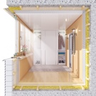 يتم تسخين الأرضيات بواسطة المبرد المدمج في ذراع التسوية الخرساني.