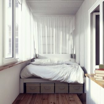 من غرفة صغيرة ، مثل الشرفة ، يمكنك إنشاء مكان رائع للاسترخاء والنوم. يمكنك تنفيذ أي خيار تصميم أو الخروج بمفهومك الخاص. الشرفة هي نوع من الأماكن حيث يمكنك ، على سبيل المثال ، إنشاء غرفة نوم صيفية ، حيث ستكون مريحة ومريحة للاسترخاء والاستجمام..