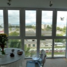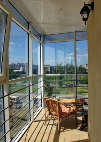خيار ممتاز سيكون شرفة مع مناظر بانورامية. سيبدو التصميم بدون إطار مثيرًا للاهتمام ، وسيساعد في خلق وهم المساحة المفتوحة. هذا الخيار مناسب لكل من الشرفة الكبيرة والطويلة وللغرفة الصغيرة. يمكنك الاستمتاع بالطبيعة في الصباح والمساء ، جالسًا على كرسي مريح بذراعين ، واحتسي القهوة العطرية ببطء.