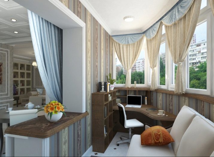 - إمكانية تجهيز لوجيا حسب تقديرك الخاص. ستكون قادرًا على إنشاء من هذه الغرفة ليس فقط مستودعًا للأشياء التي لم تتم المطالبة بها ، ولكن أيضًا ، على سبيل المثال ، منطقة ترفيهية واسترخاء أو مكتب حيث لن يزعجك أحبائك ، ويمكنك العمل بهدوء ومثمر. يمكنك الخروج بمجموعة متنوعة من الخيارات بنفسك أو دعوة متخصص متمرس. بالطبع ، ستكلف خدمات المصمم المؤهل أكثر من ذلك بكثير ، ولكن يمكنك توفير وقتك وأعصابك ، وفي بعض الحالات ، أموالك..