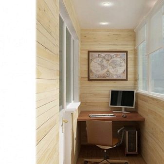 في خروتشوف الصغيرة ، عادة ما يكون من الصعب تخصيص مكان منفصل للعمل. سيكون الخيار الممتاز هو الشرفة ، والتي ستتيح لك التقاعد بفعالية والعمل بشكل منتج في أي وقت. حتى أضيق شرفة يمكن تجهيزها بشكل إبداعي كدراسة. يمكن أن يتم التشطيب من البطانة أو الخشب.