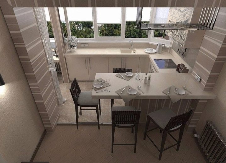 من هذه المساحة ، يمكنك عمل استمرار ممتاز للمطبخ. ستتمكن من تناول الطعام والاستمتاع بالمناظر الطبيعية الجميلة خارج النافذة. استكمل المساحة بقطع أنيقة ، ضع لهجات مشرقة مع عناصر زخرفية. اختر الألوان المفضلة لديك لتزيين الغرفة ، ثم كل يوم سوف تكون مشحونًا بمزاج إيجابي وجيد.