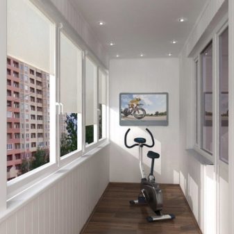 سيكون الخيار الممتاز هو استخدام هذه المساحة للاحتباس الحراري. ستكون هذه الحديقة الشتوية مكانًا مثاليًا للاسترخاء وستساعد على ابتهاجك. يمكنك أيضًا تنظيم صالة ألعاب رياضية صغيرة على الشرفة. يمكنك تجهيز جدار سويدي ، جهاز محاكاة صغير ، تعليق كمثرى.