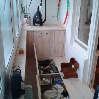 لمثل هذا القبو ، ليس من الضروري أن يكون لديك شرفة مع مساحة حرة كبيرة. يمكن بناؤها على أصغر لوجيا. بالطبع ، من غير المحتمل أن تتناسب الجرار التي تبلغ سعتها ثلاثة لترات تحت أرضية الشرفة الخاصة بك ، لكن الجرار التي تبلغ سعتها من نصف لتر إلى نصف لتر تمامًا! هذا الإصدار من القبو هو الأكثر شيوعًا ، لذلك في مقالتنا سننظر في التعليمات الخاصة ببنائه بنفسك..