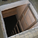 المرحلة الثالثة. ستكون المرحلة الأخيرة من العمل هي تركيب الفتحة. أولا ، خذ القياسات. بعد ذلك ، قم بتسليح نفسك بمطحنة وقطع حفرة للمكان الذي ستوضع فيه الفتحة. الآن قم بتثبيت الفتحة نفسها بالمسامير. أخيرًا ، قم بتغطية الفتحة بنفس مادة أرضية القبو الخاص بك..