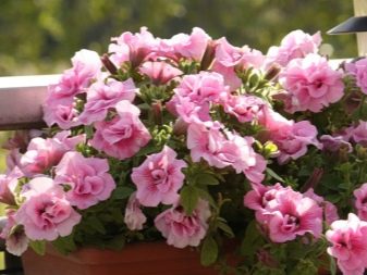 - مثال حي على كيفية تزيين شرفتك بشكل أنيق بنوع واحد من النباتات. البطونية هي المفضلة لدى الكثيرين. في هذه الصورة ، يتم تقديمها بكل مجدها..