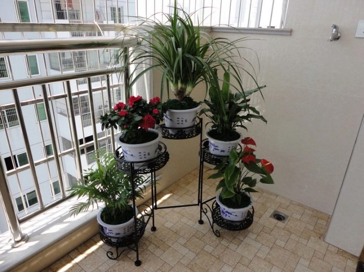 طريقة مدمجة وسهلة للغاية لوضع أقصى قدر من الأواني وصناديق الزهور على الشرفة. يمكن صنع الرفوف بأي حجم ، ويمكن وضعها في مستويات مختلفة على مسافة من بعضها البعض. من الأنسب ترتيب نباتات كبيرة في الأسفل ، وفي الجزء العلوي من الأفضل وضع أواني بأزهار أمبلية..