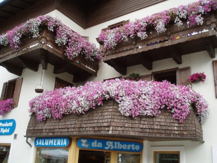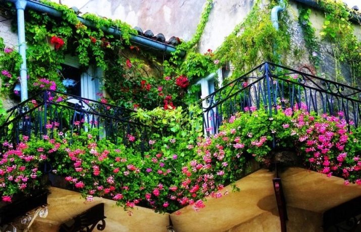 - مثال حي على كيفية تزيين شرفتك بشكل أنيق بنوع واحد من النباتات. البطونية هي المفضلة لدى الكثيرين. في هذه الصورة ، يتم تقديمها بكل مجدها..