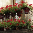 - تبدو الشرفة الصغيرة مع نفس النوع من الزهور باللون الأحمر مشرقة للغاية وغير عادية. الأحمر هو رمز للعطلة ، لذلك تحولت هذه الشرفة التي تبدو غير موصوفة إلى قطعة من الصيف.