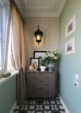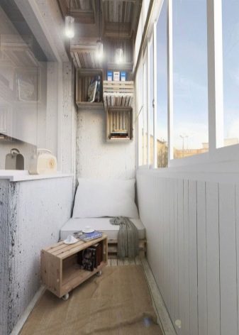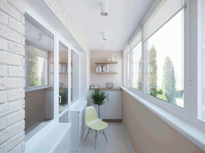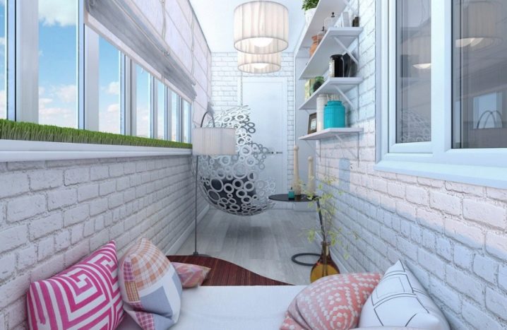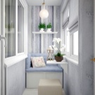 بالإضافة إلى ذلك ، تحتاج إلى شغل كامل مساحة هذه الغرفة الصغيرة وظيفيًا إلى أقصى حد. لذلك ، يمكنك تركيب خزانات حائط صغيرة تشغل مساحة صغيرة جدًا أو أرفف يمكنك وضع أواني الزهور عليها. ستجلب النباتات الراحة والنضارة إلى لوجيا الخاص بك. يمكنك جعل مساحة لوجيا الضيقة أوسع بصريًا عن طريق تزيين الجدران والأرضية بمواد خفيفة ، وكذلك عن طريق تركيب أثاث خفيف.