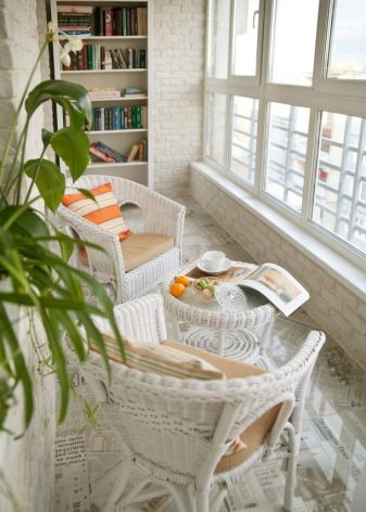 تعتبر الكراسي المعلقة أو الطاولات والكراسي المصنوعة من مواد مماثلة مثالية لترتيب منطقة ترفيهية على لوجيا. لا تتطلب هذه العناصر الداخلية عناية خاصة ، علاوة على ذلك ، فهي متحركة للغاية: فهي سهلة الحركة أثناء تنظيف الشرفة. بالإضافة إلى ذلك ، يمكنك بسهولة إجراء عمليات إعادة ترتيب منتظمة ، لأن أثاث الخيزران والأثاث المصنوع من الخيزران خفيف الوزن للغاية. مع هذا الأثاث ، يتم تزويدك بالهواء النقي والأجواء المريحة على لوجيا..