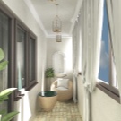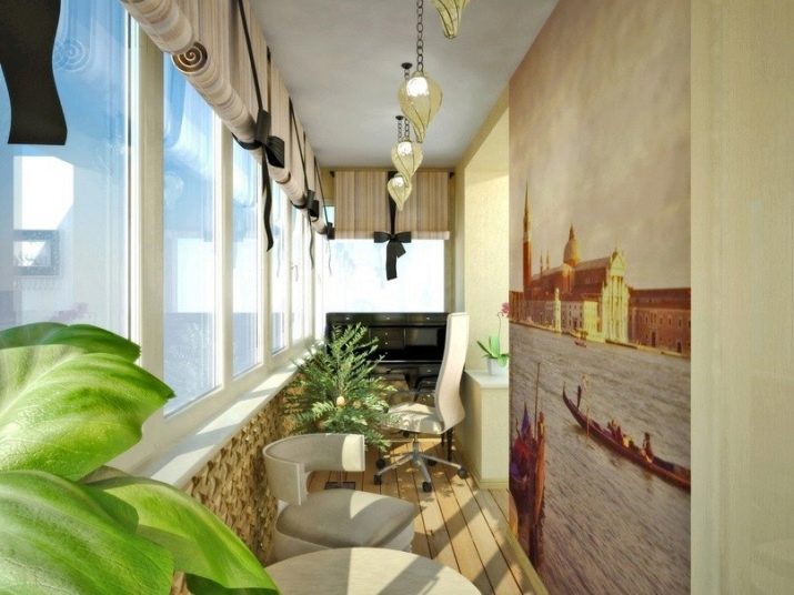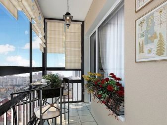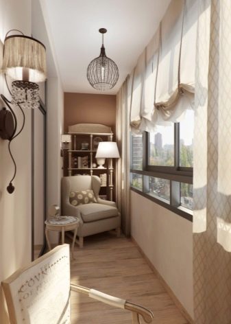 يمكن تأثيث الشرفة بأي أسلوب. يمكن أن يكون على طراز دور علوي بجدران تشبه الطوب وانتقالات ألوان زاهية مقترنة بعناصر أثاث غير عادية مثل الحقائب العثمانية. يمكن أن يكون أسلوبًا حديثًا يتميز بمزيج من الألوان الغنية مع ظلال فاتحة هادئة. يمكنك أيضًا ترتيب لوجيا بأسلوب بروفانس ، والذي يتميز بألوان الباستيل ؛ يمكنك إضافة الرومانسية إلى هذه الغرفة بمساعدة الستائر الخفيفة وعناصر الأثاث ذات اللون الوردي الباهت أو البيج..