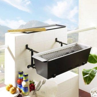 جهاز آخر لاستخدامه المحتمل على لوجيا هو الشواء الصغير. يتم تثبيته على حافة الشرفة ويتم تثبيته بإحكام هناك. صغر حجم الجهاز وملاءمته جعله يتمتع بشعبية كبيرة في وقت قصير. ومع ذلك ، حتى هنا يوجد خطر نشوب حريق ، حيث أن الجهاز ليس كهربائيًا وستحتاج إلى إشعال النار لطهي الكباب ، الأمر الذي قد يكون مستاءً للغاية لبعض السلطات. أيضا ، هذا الشواء له عيب آخر – كمية صغيرة من الدخان تأتي من النار..