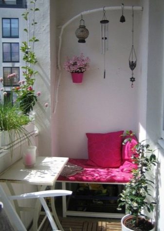 المرحلة التالية التي لا تقل أهمية هي اختيار الأثاث. نظرًا لأن لديك مساحة صغيرة ، يجب ألا تكون كل التفاصيل الداخلية أنيقة فحسب ، بل عملية أيضًا. لن تناسب أي طاولات أو خزانات إضافية على الشرفة الصغيرة.