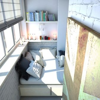 تذكر أنه وفقًا لجميع القواعد ، لا يُسمح بتجهيز غرفة النوم على الشرفة إلا إذا تجاوزت أبعادها مترين في الطول..