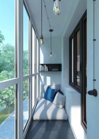 يجب بالتأكيد أن تكون الشرفة التي تخطط لترتيب غرفة نوم فيها مزججة. بالنسبة للتزجيج ، من الأفضل استخدام الزجاج المزدوج. سيسمح لك ذلك بعدم التجميد حتى في فصل الشتاء ، خاصة إذا كنت تقوم بعزل الغرفة بشكل إضافي. لتوفير مساحة ، يجب أن تكون النوافذ إما منزلقة أو مزودة بشرائط تفتح للخارج. من الأفضل ترك الجدران الجانبية فارغة..