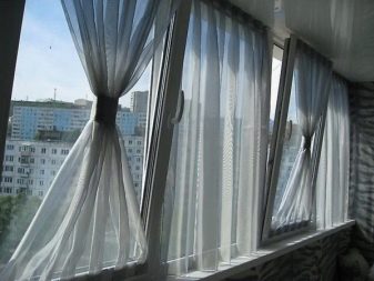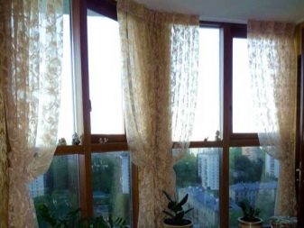 - اعتمادًا على الشرفة ، يتم تحديد طول الستائر: بالنسبة للشرفة الصغيرة ، يجدر اختيار الستائر القصيرة أو التول أو الستائر حتى لا تشوش الغرفة ، وفي ظروف التربيع الكبير للشرفة الطويلة ستظهر الستائر المصنوعة من الأقمشة الخفيفة بإيجاز.