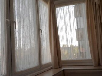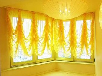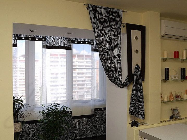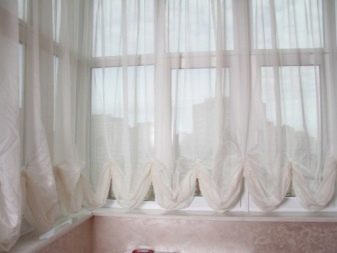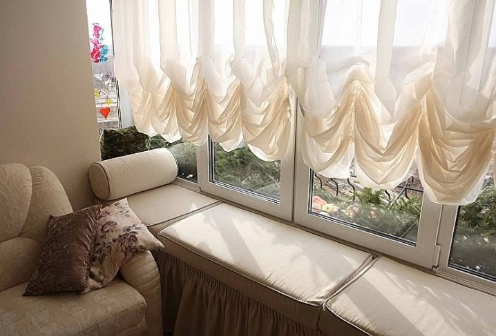 - يتم تعليق الستائر في لوجيا المزجج أو على باب الشرفة ، ويتم اختيارها بناءً على الجزء الداخلي للغرفة (غرفة المعيشة ، المطبخ ، غرفة النوم ، الحضانة) أو يتم اختيارها بشكل منفصل.