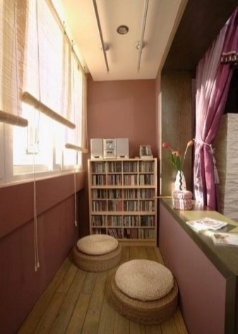 - يجب اختيار الستائر كديكور إذا كان حجم الشرفة أكثر من 5-6 أمتار مربعة وغالبًا ما يتم استخدامها. إذا تم استخدام لوجيا لتخزين الأشياء ، ولكن لا يزال الأمر يستحق التثبيت ، فقم بإعطاء الأفضلية للنماذج البسيطة والوظيفية التي لن تسمح بدخول ضوء الشمس الساطع وستحمي الناس من أعين المتطفلين.