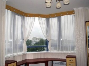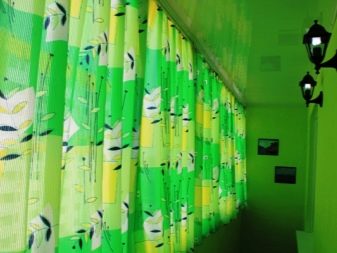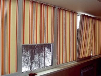 - يتم تعليق الستائر في لوجيا المزجج أو على باب الشرفة ، ويتم اختيارها بناءً على الجزء الداخلي للغرفة (غرفة المعيشة ، المطبخ ، غرفة النوم ، الحضانة) أو يتم اختيارها بشكل منفصل.