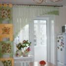 - يجب ألا تتداخل ستائر المطبخ مع باب الشرفة مع الفتح الحر للباب ، اختر ستائر غير صلبة ، ولكن من جزأين لتوفير الوصول المجاني إلى الشرفة وليس لفترة طويلة.