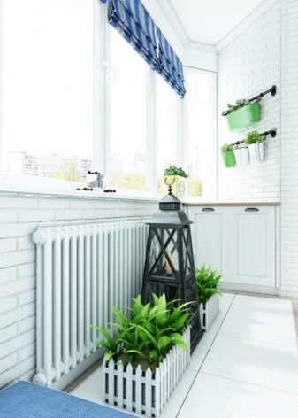 - ستكون الأقمشة الطبيعية مناسبة على الشرفة على الجانب الشمالي من الشقة ، وإعطاء الأفضلية للظلال الفاتحة لجعل المساحة أفتح بصريًا.