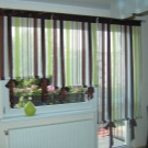 الستائر الشفافة الخفيفة مناسبة تمامًا للمطبخ المتواضع ، وتسمح لك الحبال الموجودة على الستائر بتثبيتها في الموضع المطلوب وإتاحة الخروج إلى الشرفة مجانًا..