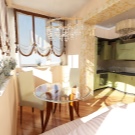 - منطقة العمل. أخرج مجموعة المطبخ ومعظم الأجهزة المنزلية إلى الشرفة ، وبالتالي قم بتحرير مساحة في المطبخ نفسه ، والتي يمكن أن تكون الآن بمثابة غرفة طعام كاملة ، ويعتبر هذا الاتصال ناجحًا للغاية.