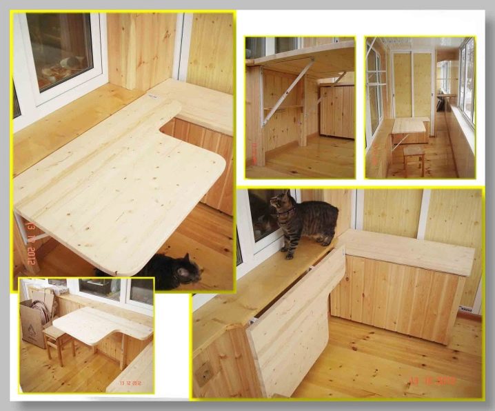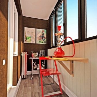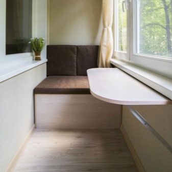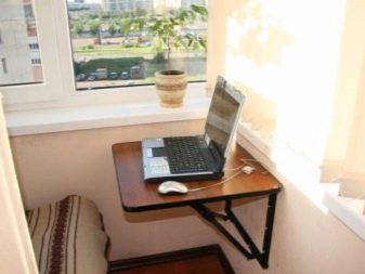 من الواضح أن الطاولات الصغيرة ليست متعددة الاستخدامات. إذا رغبت في ذلك ، يمكن تركيب خزانة صغيرة مع قسم قابل للطي على الشرفة. سيخلق هذا مكان عمل مريح للغاية..