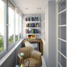 في لوجيا ، يمكنك إنشاء مساحة ترفيهية أو منعزلة بالكامل ، على سبيل المثال ، بناء مكتبة صغيرة ، منطقة ترفيهية ، منطقة عمل – مكتب.