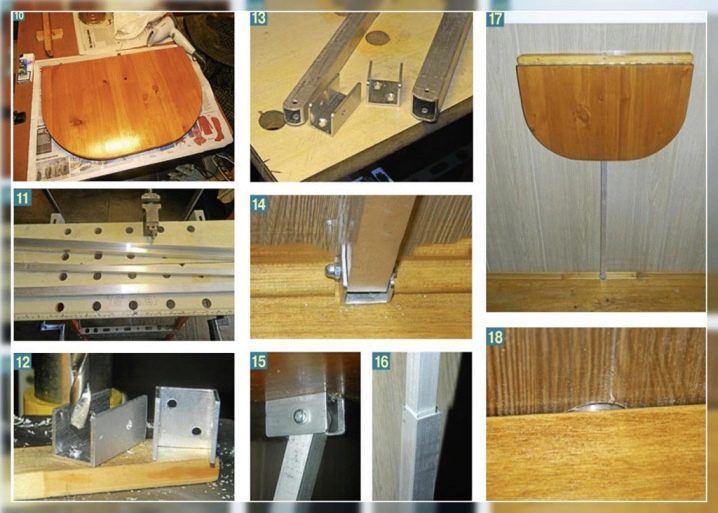 بعد ذلك ، اجمع تفاصيل الجدول المستقبلي – اربط المفصلات بسطح الطاولة باستخدام مفك البراغي ؛ عمل ثقوب في الجدار كما هو مطلوب من حيث الشكل والحجم. اربط الهيكل واستمتع باستخدامه. بالإضافة إلى ذلك ، يمكنك صنع كرسي مستلق أو عدة كراسي.