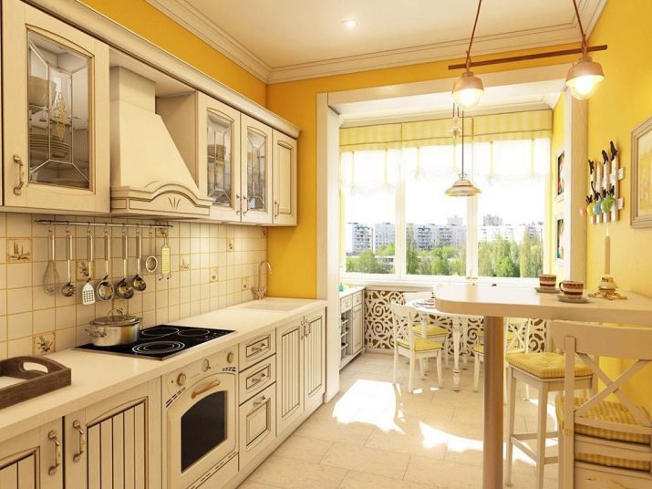 ستكون طاولة البار في متناول اليد على الشرفة من المطبخ لتجعل كل صباح أكثر لطفًا. قم بتثبيت عداد شريط على طول جدار لوجيا ، بدلاً من كونترتوب مستطيل ، اختر أشكالًا مستديرة لإعطاء مساحة أصالة واكتمال. ستصبح قطعة الأثاث في الزاوية أكثر عملية ، في الزاوية يمكنك وضع ديكور المطبخ أو تثبيت الأجهزة التي نادرًا ما تستخدم ، وعناصر المطبخ القبيحة ، وإنشاء مساحة لتخزين النبيذ والمشروبات الأخرى. الشكل 13 ، 14