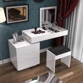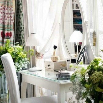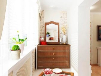 تعتبر منضدة الزينة الموجودة على الشرفة مفيدة للنساء اللواتي خصصن هذه المساحة لاستخدامهن. من المهم بشكل خاص إنشاء “منطقة تجميل” في غرفة النوم مع إمكانية الوصول إلى الشرفة: سيؤدي ذلك إلى تفريغ الغرفة واستخدام غرفة الشرفة العملية قدر الإمكان. في جزء واحد من الغرفة ، يمكنك تركيب خزانة ملابس ، وفي المقابل ، منضدة زينة بها إكسسوارات نسائية ومرآة كبيرة..