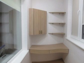 لن تصبح مثبتة على طول جدران الشرفة مجرد طاولة ، ولكن أيضًا هياكل تخزين إذا تم تثبيت أرفف مغلقة في الأسفل.