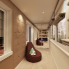 تعتمد الزخرفة الداخلية لوجيا ، أولاً وقبل كل شيء ، على حجمها. هناك العديد من أنواع الديكورات الداخلية التي تعتبر رائعة لتزيين هذه المساحة. بالنسبة للمقطع الصغير ، من الأفضل اختيار أثاث الزاوية الحديث بألوان دافئة. بهذه الطريقة يمكنك إنشاء ركن مريح. مثال على هذا التصميم هو خزانة ملابس زاوية صغيرة على جانب واحد من الغرفة وأريكة زاوية مع طاولة صغيرة على الجانب الآخر من الشرفة..