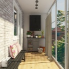 بالإضافة إلى ذلك ، تحتاج إلى شغل كامل مساحة هذه الغرفة الصغيرة وظيفيًا إلى أقصى حد. لذلك ، يمكنك تركيب خزانات حائط صغيرة تشغل مساحة صغيرة جدًا أو أرفف يمكنك وضع أواني الزهور عليها. ستجلب النباتات الراحة والنضارة إلى لوجيا الخاص بك. تتمثل إحدى الأفكار غير المعتادة ، ولكنها ناجحة جدًا ، في تثبيت أثاث من طراز المحولات ، والذي ، إذا رغبت في ذلك ، يمكن طيه بسهولة لتوفير مساحة. يمكنك جعل مساحة لوجيا الضيقة أوسع بصريًا بمساعدة تكسية الجدران والأرضيات بمواد بناء خفيفة. يمكن تزيين جدران لوجيا بصور مؤطرة أو صور عائلية.