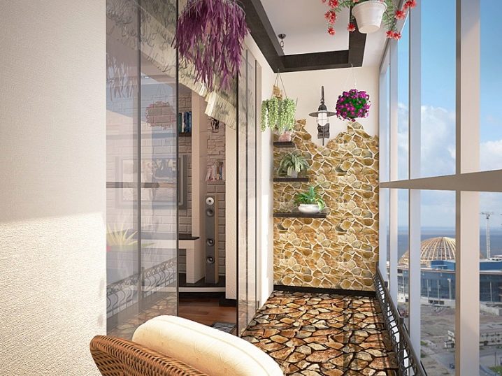بالإضافة إلى ذلك ، تحتاج إلى اختيار مواد التشطيب المناسبة. يمكنك تزيين الشرفة بجص مثير للاهتمام "خنفساء البارك", يمكنك وضع البلاط على لوجيا بتقليد الطوب ، يمكنك ترتيبها بالطريقة الفرنسية. تبدو لوجيا مع الفلين للديكور الداخلي غير عادية للغاية.