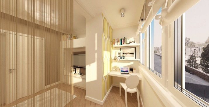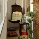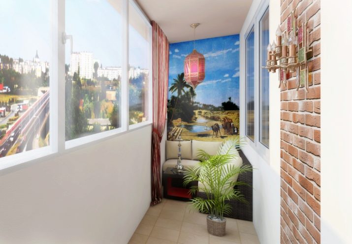 تعتمد الزخرفة الداخلية لوجيا ، أولاً وقبل كل شيء ، على حجمها. هناك العديد من أنواع الديكورات الداخلية التي تعتبر رائعة لتزيين هذه المساحة. بالنسبة للمقطع الصغير ، من الأفضل اختيار أثاث الزاوية الحديث بألوان دافئة. بهذه الطريقة يمكنك إنشاء ركن مريح. مثال على هذا التصميم هو خزانة ملابس زاوية صغيرة على جانب واحد من الغرفة وأريكة زاوية مع طاولة صغيرة على الجانب الآخر من الشرفة..