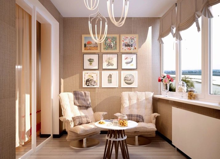 بالإضافة إلى ذلك ، تحتاج إلى شغل كامل مساحة هذه الغرفة الصغيرة وظيفيًا إلى أقصى حد. لذلك ، يمكنك تركيب خزانات حائط صغيرة تشغل مساحة صغيرة جدًا أو أرفف يمكنك وضع أواني الزهور عليها. ستجلب النباتات الراحة والنضارة إلى لوجيا الخاص بك. تتمثل إحدى الأفكار غير المعتادة ، ولكنها ناجحة جدًا ، في تثبيت أثاث من طراز المحولات ، والذي ، إذا رغبت في ذلك ، يمكن طيه بسهولة لتوفير مساحة. يمكنك جعل مساحة لوجيا الضيقة أوسع بصريًا بمساعدة تكسية الجدران والأرضيات بمواد بناء خفيفة. يمكن تزيين جدران لوجيا بصور مؤطرة أو صور عائلية.