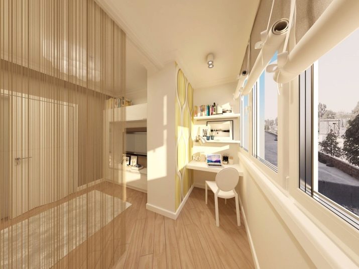 إذا كان لديك لوجيا لغرفتين مع مخرج من غرفة واحدة ، فستكون الغرفة أكثر اتساعًا. يمكن تقسيم جزء منها إلى منطقة ترفيهية ، ويمكن جعل جزء منها مساحة عمل. في المنازل أو الشقق الصغيرة ، سيكون هذا التوسع ملحوظًا جدًا..