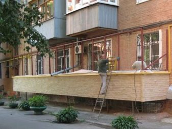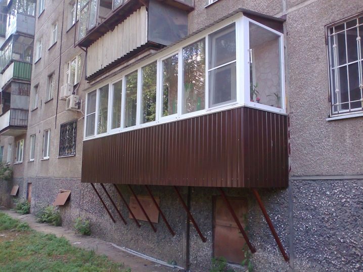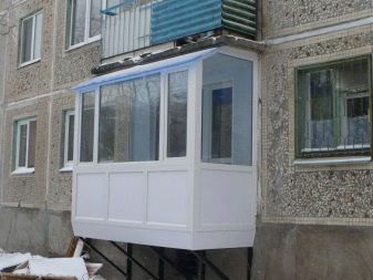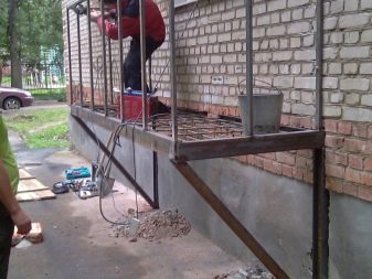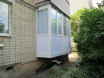 - على الدعامات الخارجية. يستخدمون الأعمدة أو الأقواس أو كلاهما معًا. لوحة القاعدة تقع عليهم. حامل العمود مناسب فقط للشرفات التي لا يزيد ارتفاعها عن الطابق الثاني. لا بد من تجهيز الأساس. هناك نقص في استخدام الأعمدة كدعم ، حيث يمكن أن تستقر بشكل غير متساو أثناء التشغيل ، مما يتسبب في انحناء الهيكل.