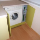 يمكنك أيضًا إنشاء غرفة مرافق إضافية ، والتي سيتم تجهيزها بمساحة تخزين لعلب ، ودلو أرضي ، وطاولة كي والعديد من المعدات الأخرى. أيضًا ، من خلال جلب المياه والصرف الصحي إلى الشرفة المبنية ، يمكنك إخراج غسالة ، والتي عادة ما يكون من الصعب تحديد المكان في الشقق الصغيرة..