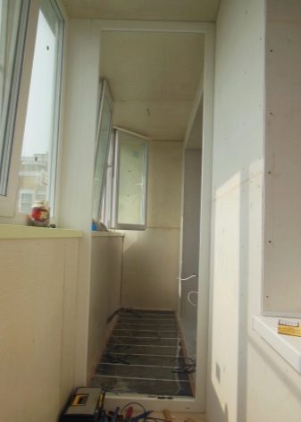 دعنا ننتقل إلى العزل. لهذا ، من الأفضل استخدام Penoplex. إنه يحتفظ بالحرارة تمامًا ، ويمنع الهواء البارد من الاختراق ، ولا يخاف من التكثيف. سماكة الرغوة لعزل الشرفة 40-60 مم. يتم التمديد على كامل مساحة جدران الشوارع. ثم يتم تغطيتها بلوح جصي مقاوم للرطوبة أو ألواح PVC.