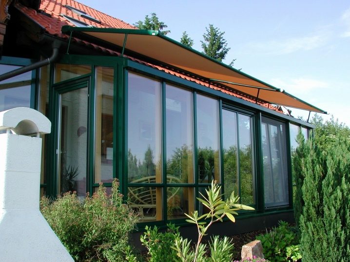 إذا كنت قد أرفقت شرفة بمنزل خاص وتخطط لوضع حديقة شتوية هناك ، فإن الخيار الممتاز لفصل الصيف هو توفير لتركيب مظلة. سيسمح للهواء بالمرور ، ومن السهل التحكم فيه ، ويمكنك فتح السقف وإغلاقه حسب الحاجة. من الممكن تجهيزها بالتحكم الآلي وتسخين الهواء.
