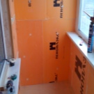 - يجب ملء جميع الفجوات الموجودة في المفاصل برغوة البولي يوريثان ، ثم يتم تسوية السطح بسكين. كما في الإصدار السابق ، يمكن عزل السطح الناتج باستخدام Penofol. هناك طريقة بديلة لتثبيت العزل على الجدران باستخدام غراء خاص. لهذا ، يتم استبعاد تشكيل الصندوق ، لكن هذا الخيار ليس دائمًا عمليًا ومريحًا..