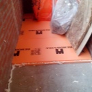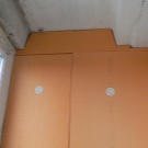 - لعزل السطح بشكل أفضل ، يوصي الخبراء بتطبيق طبقة إضافية من المواد مثل البينوفول. يرجى ملاحظة أن وضع هذه المادة يتم مع الجانب المعدني لأعلى. المفاصل معزولة بشريط مقوى.