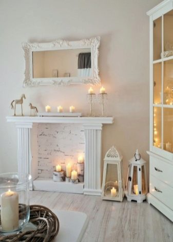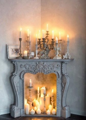 أثبتت الشموع أيضًا أنها حل مثير للاهتمام. لا تنس تغطية مكان الشموع بمواد مقاومة للحريق. تبدو العديد من الشموع ذات الأحجام المختلفة أو الشموع الصغيرة في الشمعدانات على شكل حطب مربحة للجانبين. كل هذا يتوقف على ذوقك.