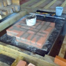 في الجزء السفلي من الحفرة ، يُسكب الحجر المكسر بسمك 10-15 سم ، ويتم تركيب القوالب ، ومعالجتها بالراتنج أو التنجيد بمواد التسقيف. يُسكب الأساس بملاط من الأسمنت الرملي (3 أجزاء من الملعب وجزء واحد من الأسمنت). بعد تسوية الأساس المصبوب على المستوى ، اتركه حتى يجف لمدة أسبوع تحت غلاف بلاستيكي.
