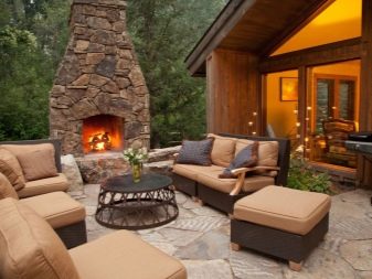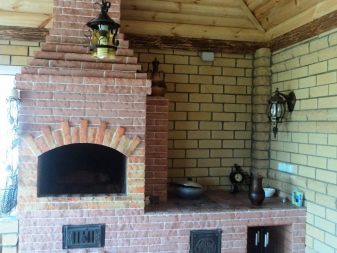 إذا تم صنع مدفأة خارجية في الشارع مع كشك حديقة ، فعادة ما تكون الجدران أو الأسقف مصنوعة من الخشب والبلاستيك والألواح المعدنية وغيرها من المواد الخفيفة. بالإضافة إلى الفرن نفسه ، يمكن أن يكون الطوب عبارة عن أعمدة داعمة ، ومنصة أمام صندوق الاحتراق لمنع نشوب حريق.
