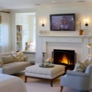 يمكن وضع أرفف مع كتب أو أشياء أخرى مثيرة للاهتمام على جانبي الموقد. إذا كان الموقد مصنوعًا على الطراز الكلاسيكي ، فيمكن تزيينه على الجانبين بأعمدة أو قوالب من الجص.